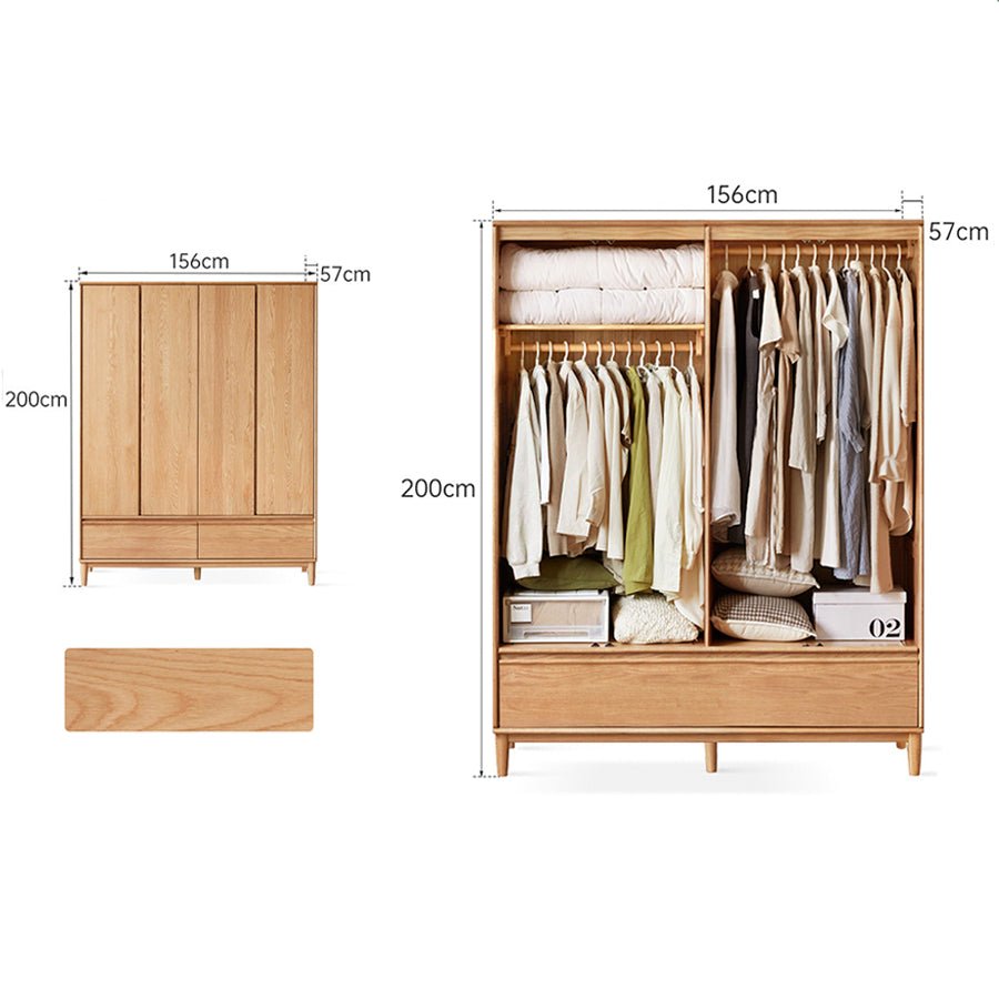 The Dorno Solid Oak Wardrobe with Bottom Drawer is a raised-base design that combines style with smart functionality. Available in three size options to suit a variety of home layouts, it features a well-planned interior with multiple compartments for both hanging and folded storage. Pure solid wood shelves ensure lasting durability, while the elevated design allows it to sit neatly above skirting boards which maximising usable space and making cleaning easier. With its thoughtful structure and timeless craftsmanship, the Dorno wardrobe offers a refined storage solution tailored to modern living.