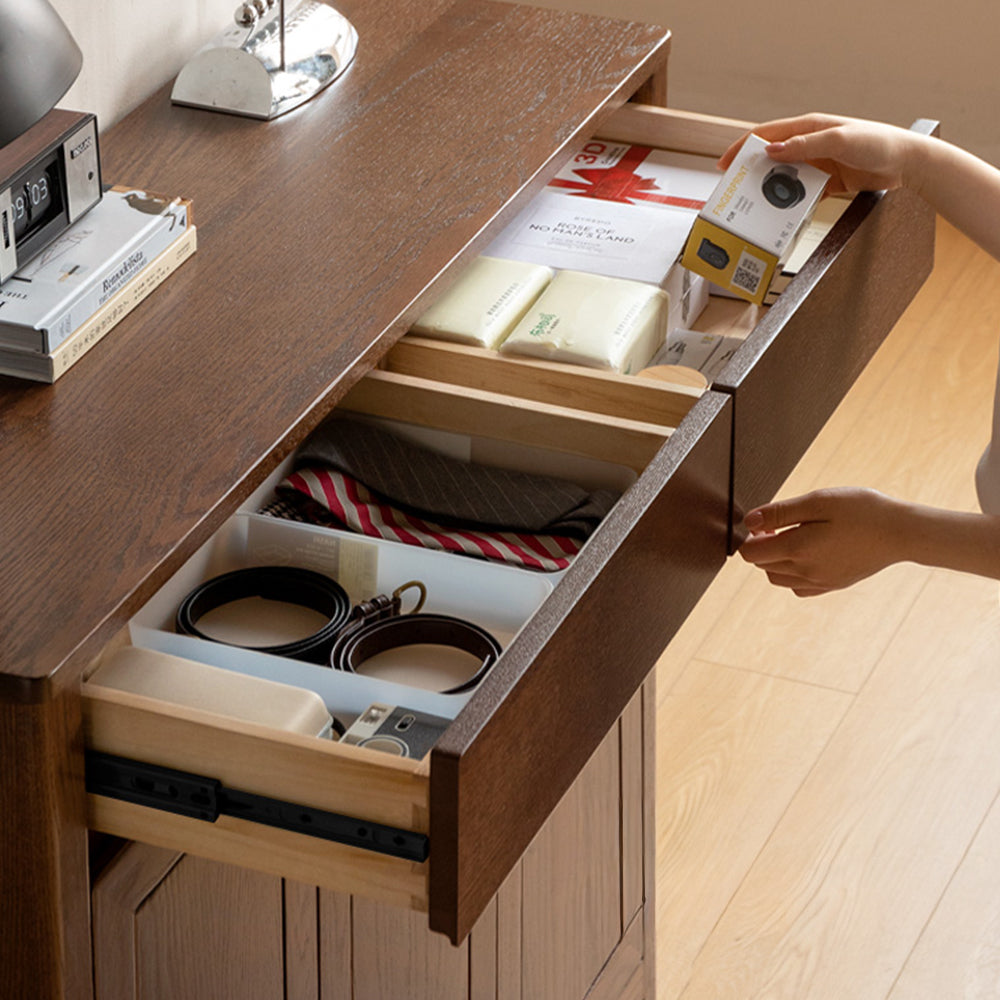 The Humbie Solid Ash Shoe Cabinet combines generous storage with a rich, sophisticated finish, bringing warmth and elegance to any entryway. Available in three- or four-door designs, it offers ample space to keep shoes neatly organised and hidden from view. Inside, adjustable and removable shelves provide flexible configurations to fit everything from casual sneakers to tall boots, while the two spacious top drawers are perfect for storing keys, shoe care items, or other daily essentials. Expertly crafted from premium solid ash, this cabinet features clean lines and timeless craftsmanship that suit both classic and contemporary interiors. Also available in a painted walnut finish for a darker, more refined look.