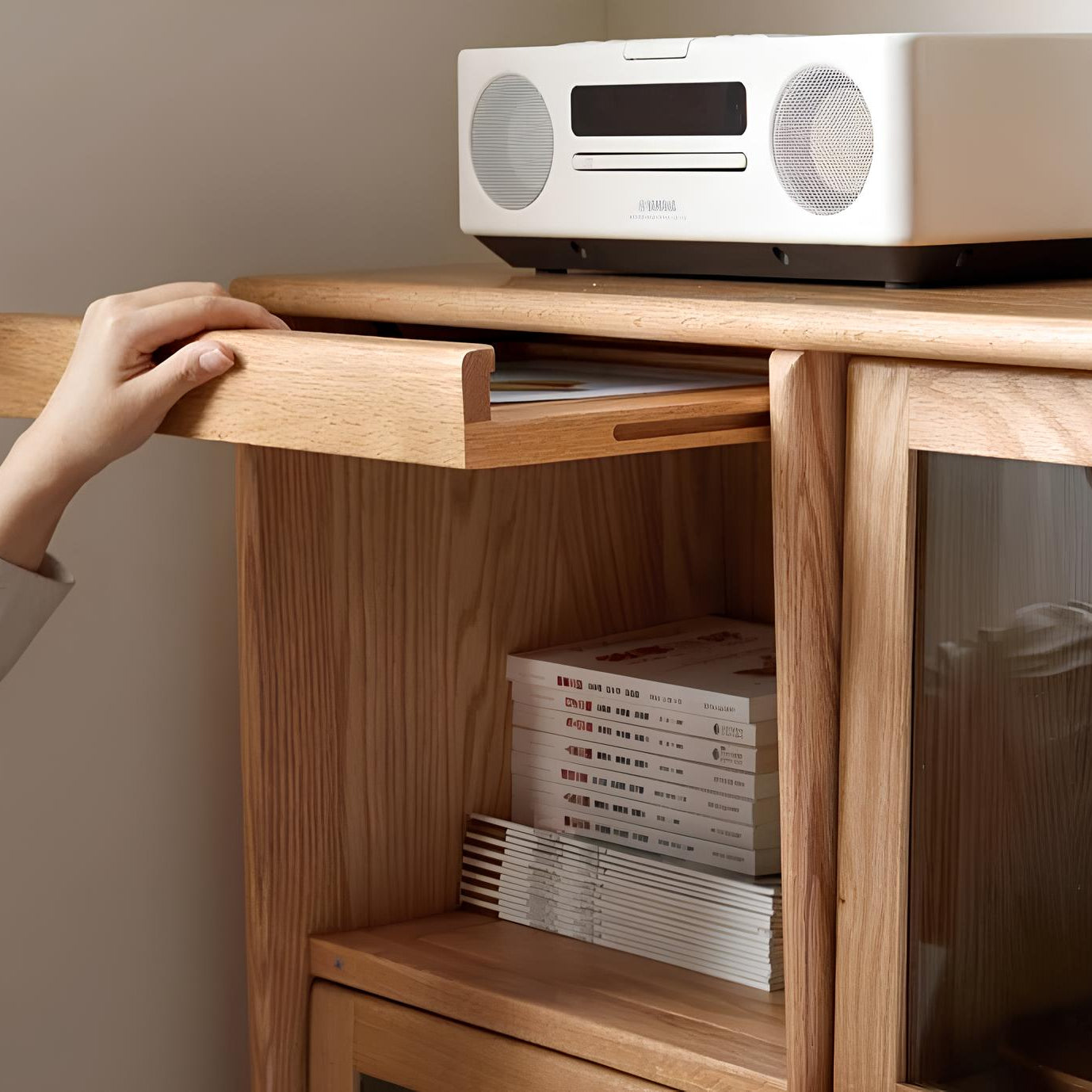 The Lima Natural Oak Small Sideboard is a stylish and functional addition to your living space. Divided into four sections, it features two glass doors—one located on the top right and the other on the bottom left—offering an elegant display for your cherished collections. Crafted from solid natural oak, this sideboard is a testament to enduring quality and craftsmanship. With its versatile design, the Lima Natural Oak Small Sideboard effortlessly complements any room in your home, adding both sophistication and practicality to your decor. Embrace the beauty of natural oak and elevate your living space with this exquisite piece of furniture.
